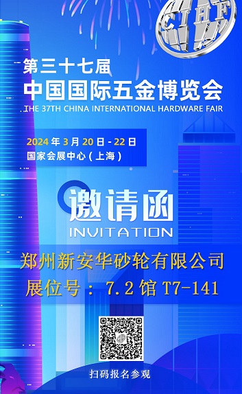 郑州新安华砂轮有限公司本次参展席位:T7-141,欢迎新老客户于2024年3月20-22日在国家会展中心(上海)莅临洽谈。
